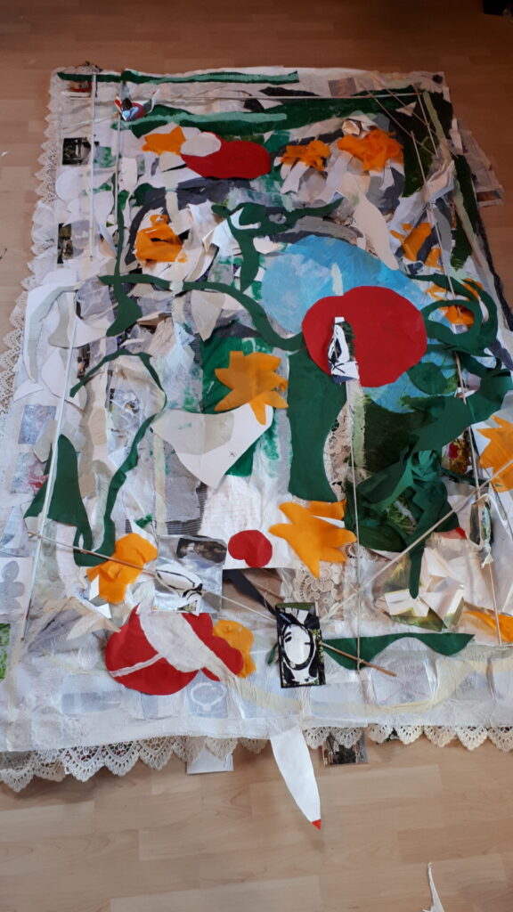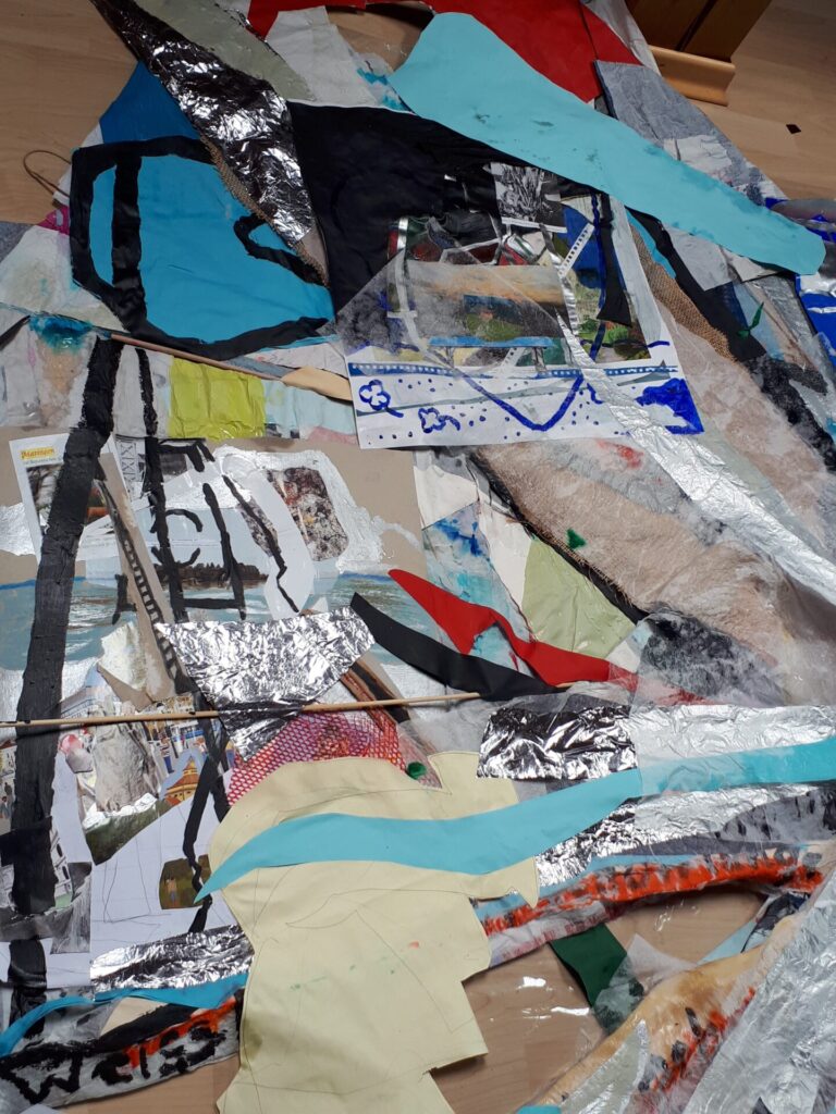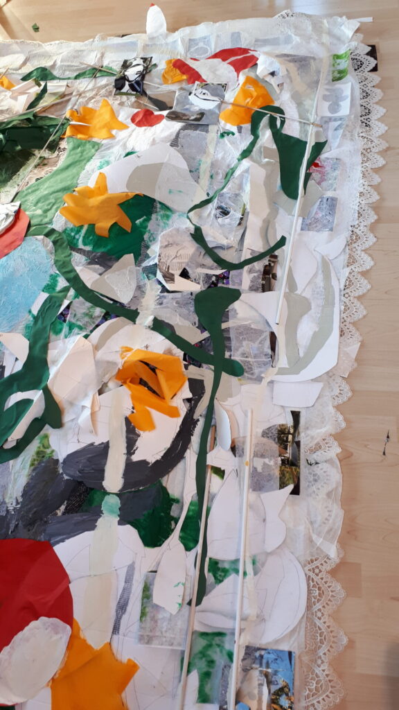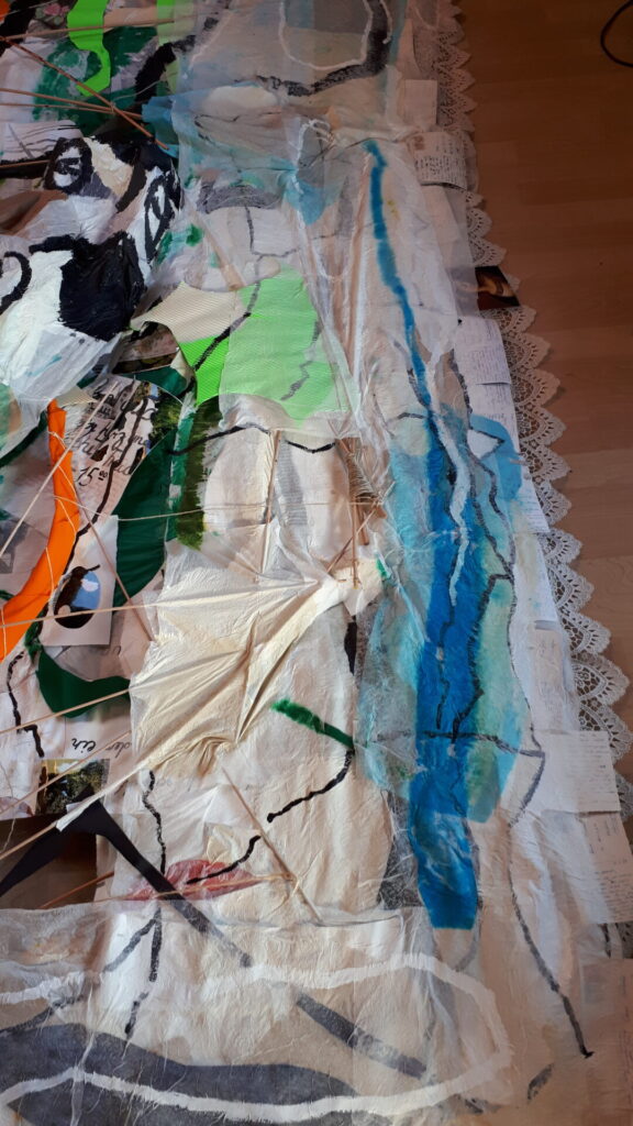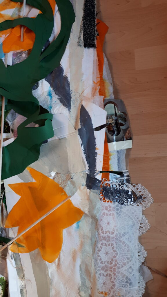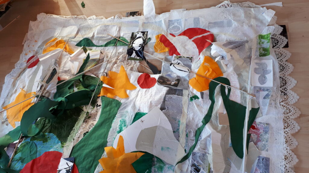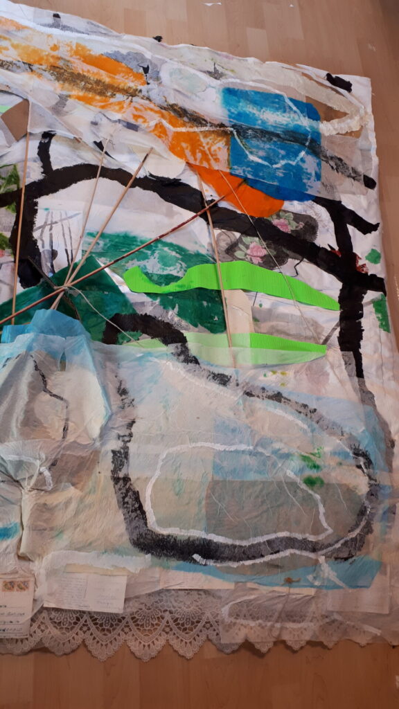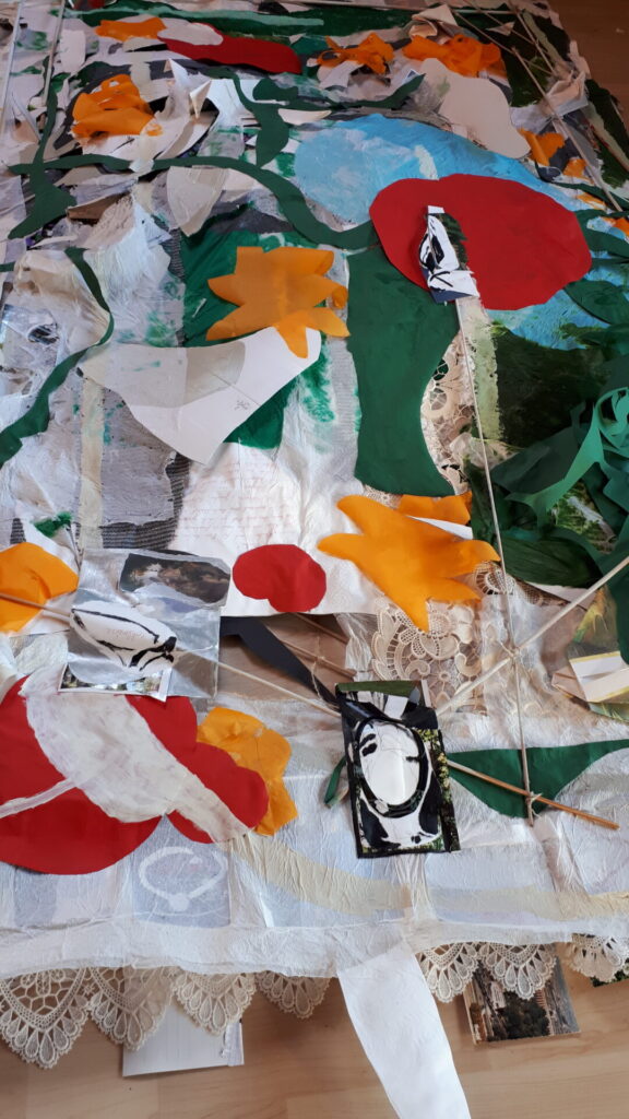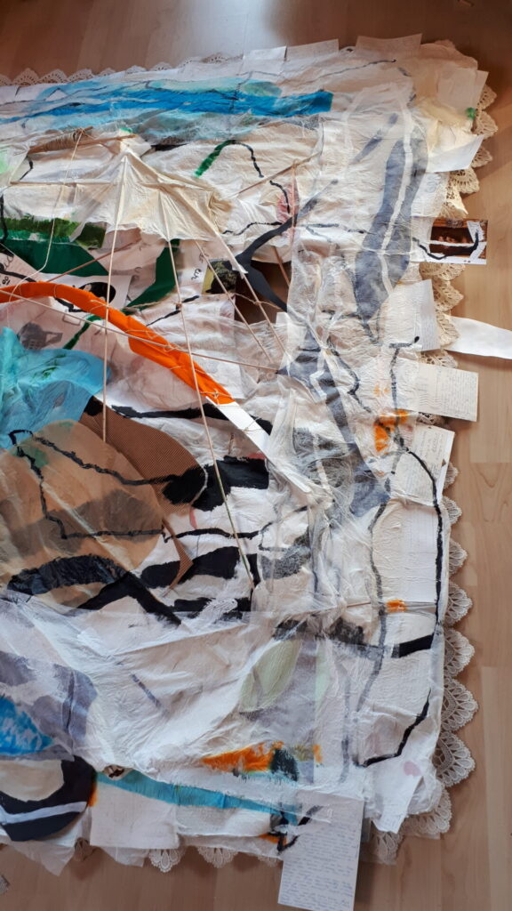 Der lange Brief und die Fahrt mit dem Riesenrad (große Collage als Sonnensegel gedacht).