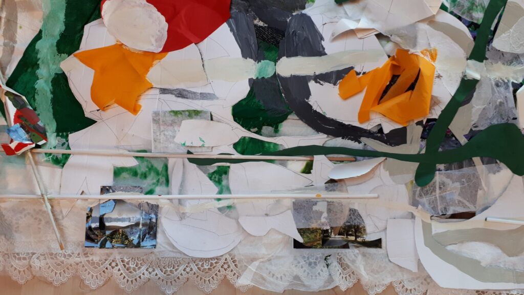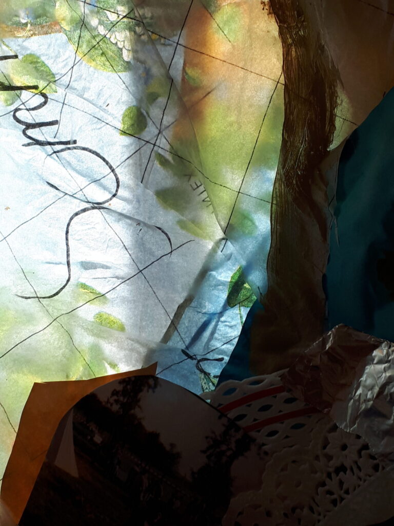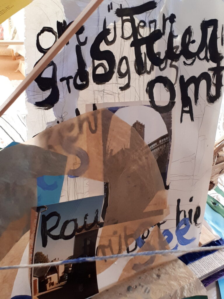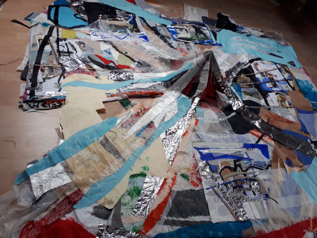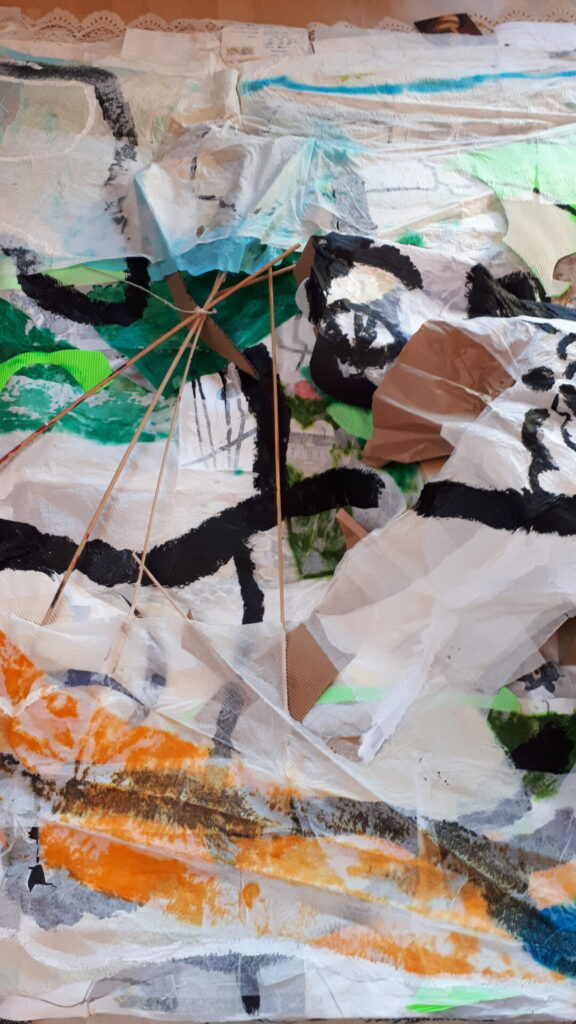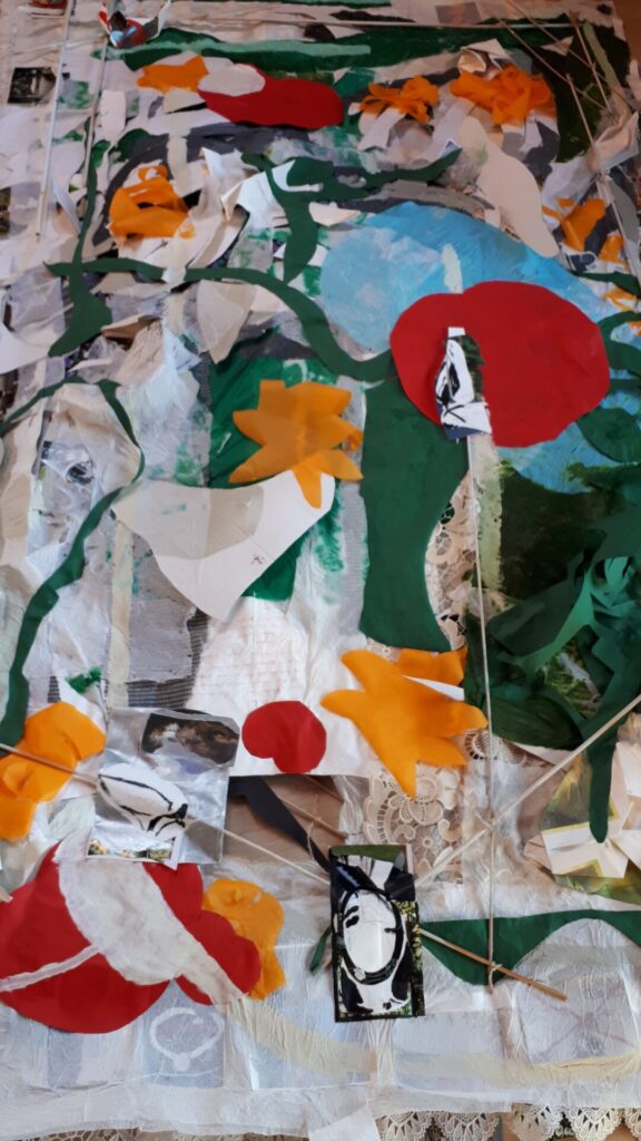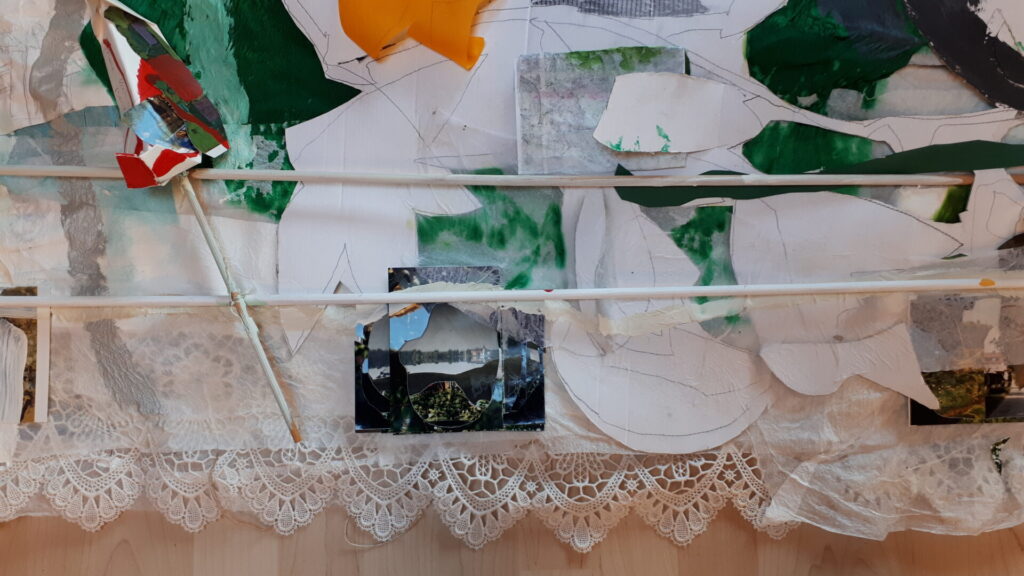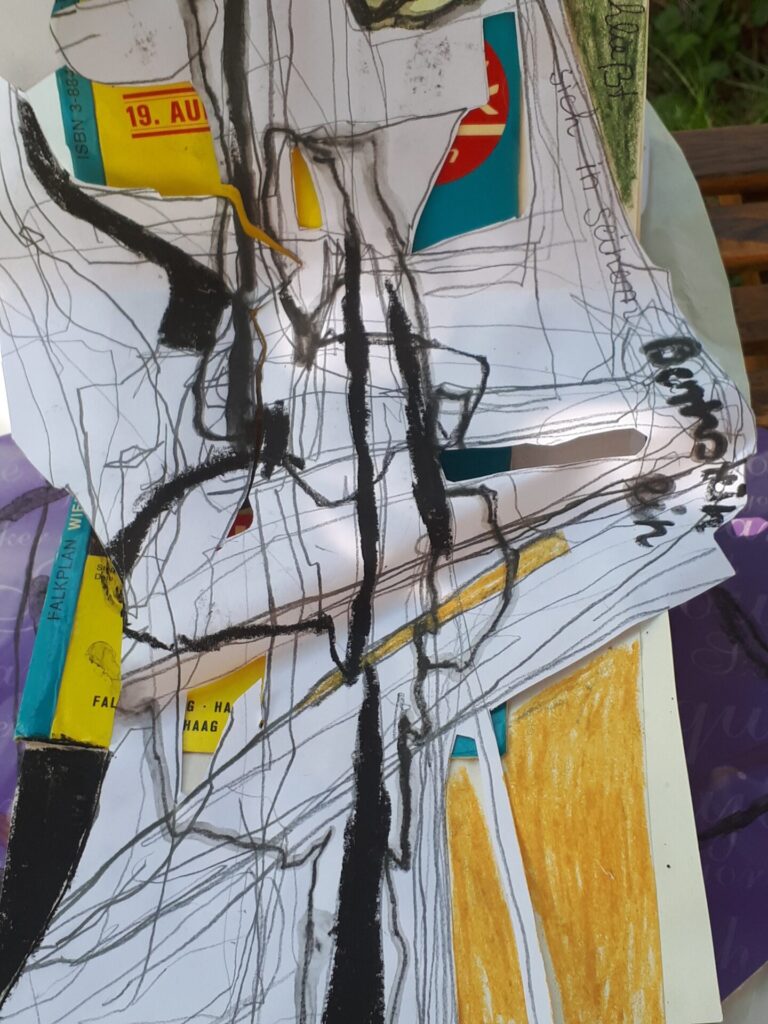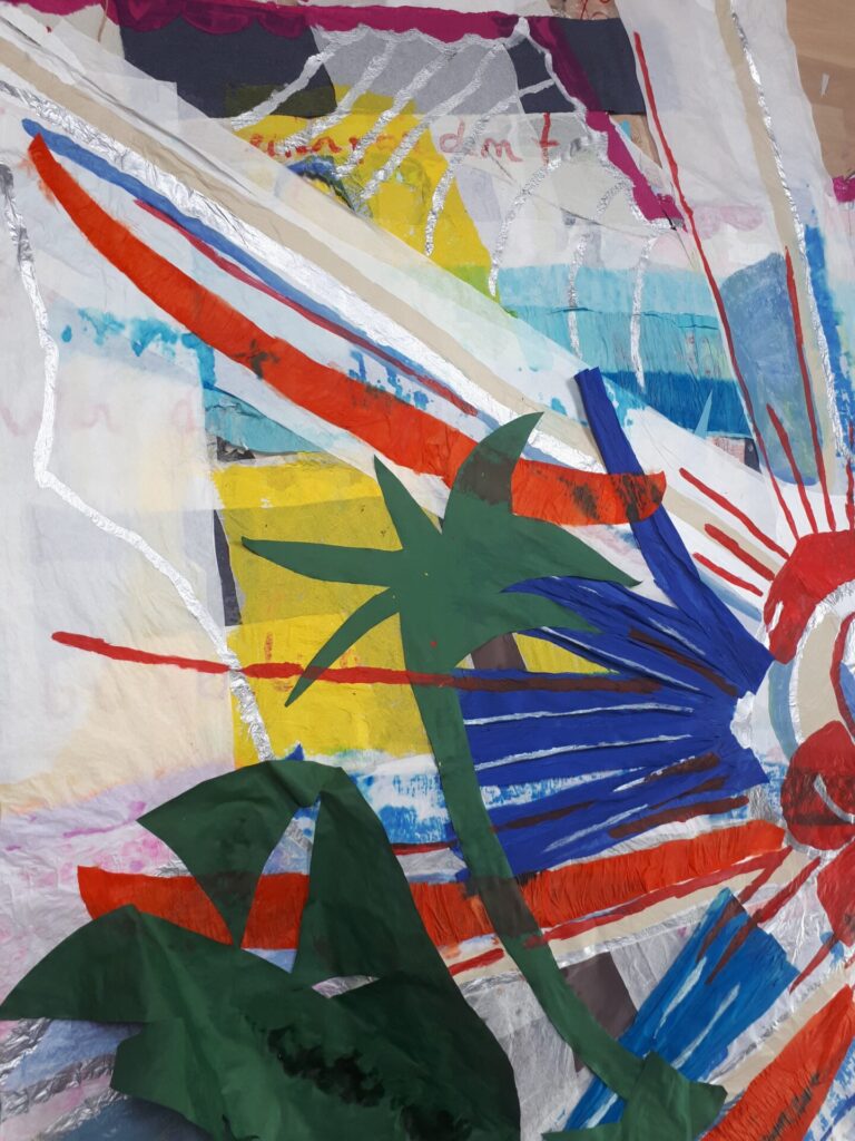 Der lange Brief und die Fahrt mit dem Riesenrad (große Collage als Sonnensegel gedacht).