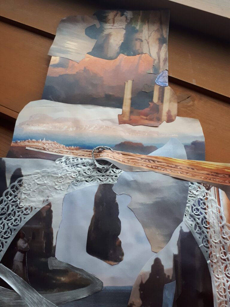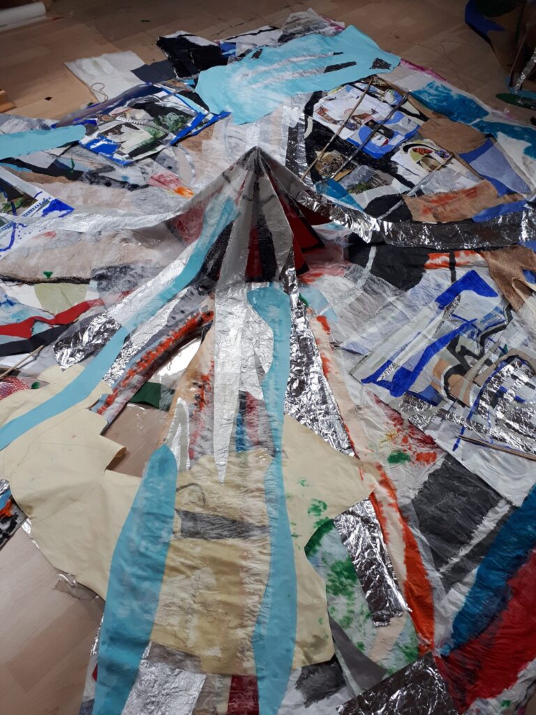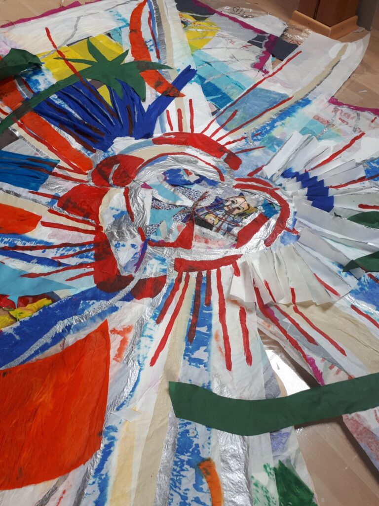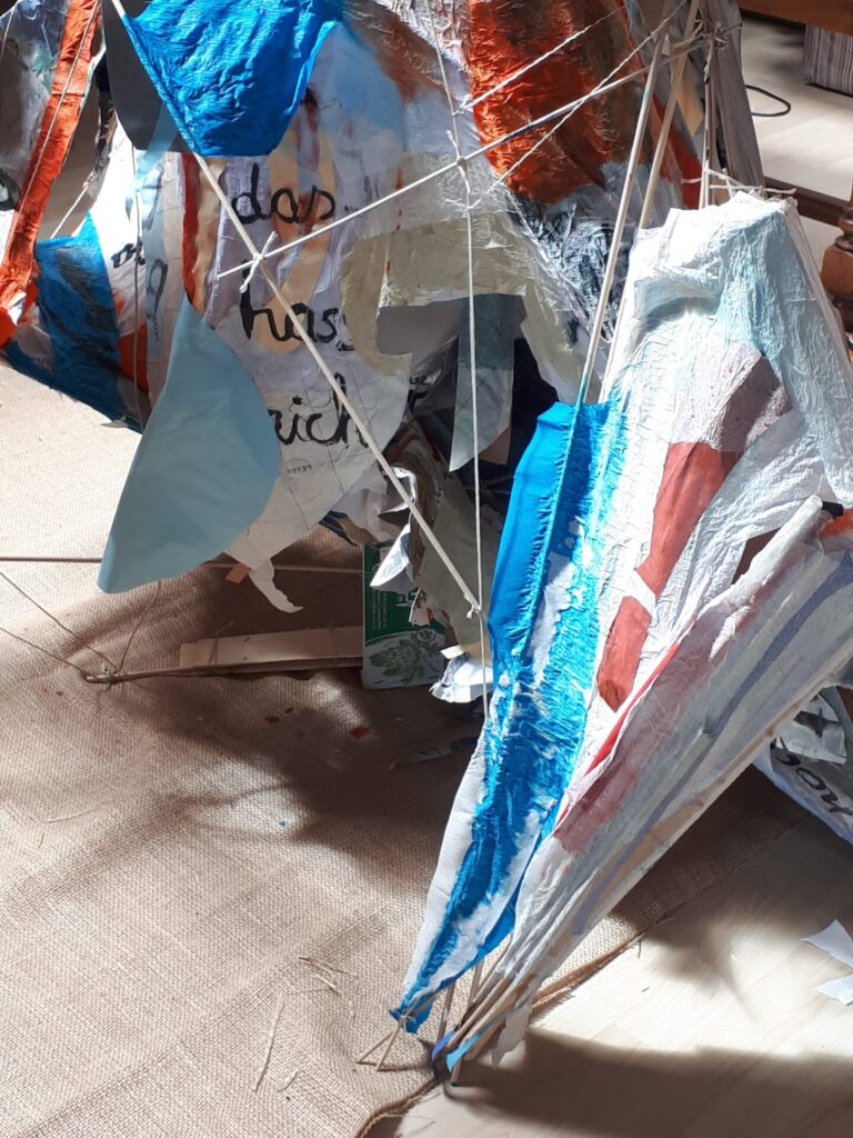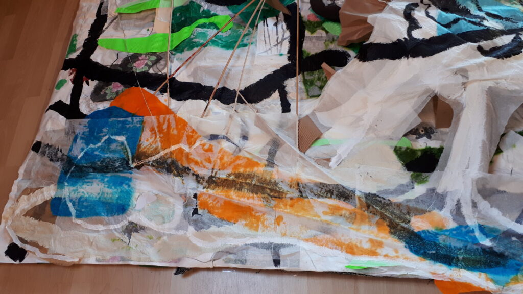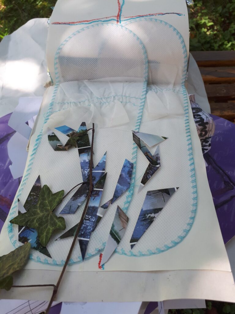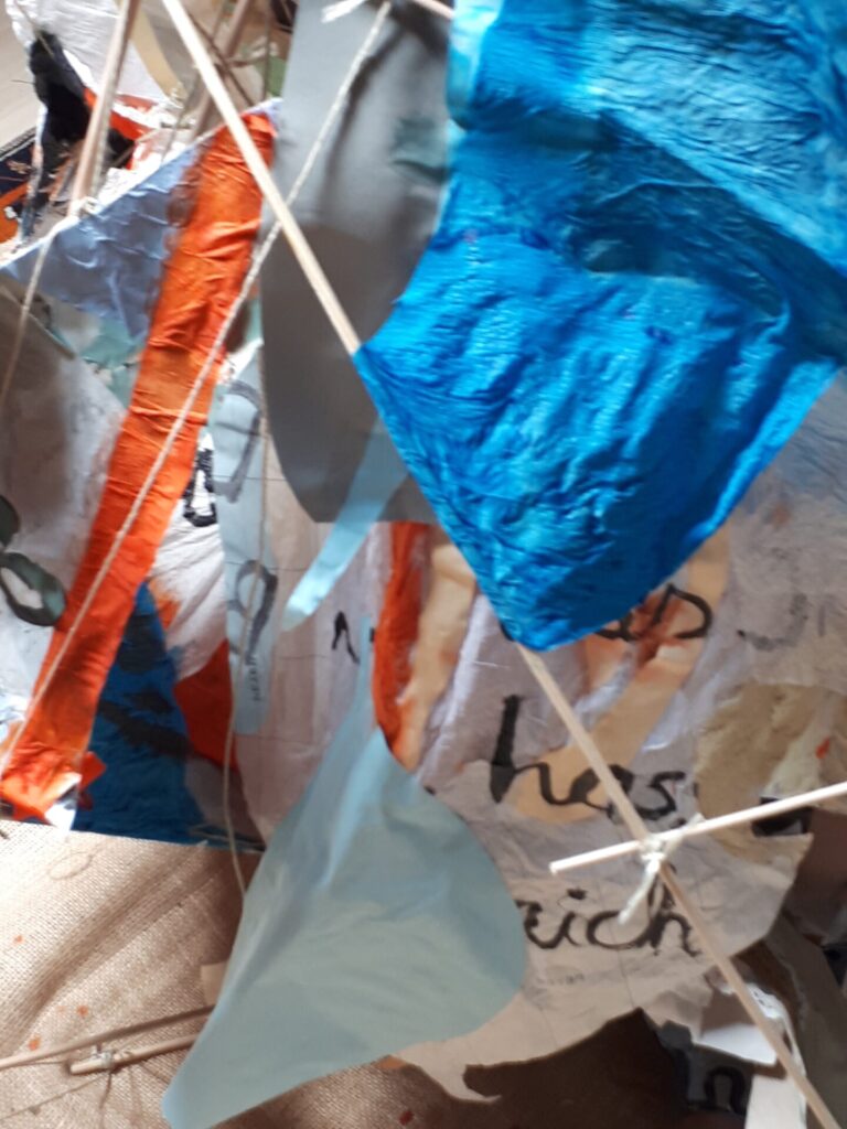 Der lange Brief und die Fahrt mit dem Riesenrad (große Collage als Sonnensegel gedacht).