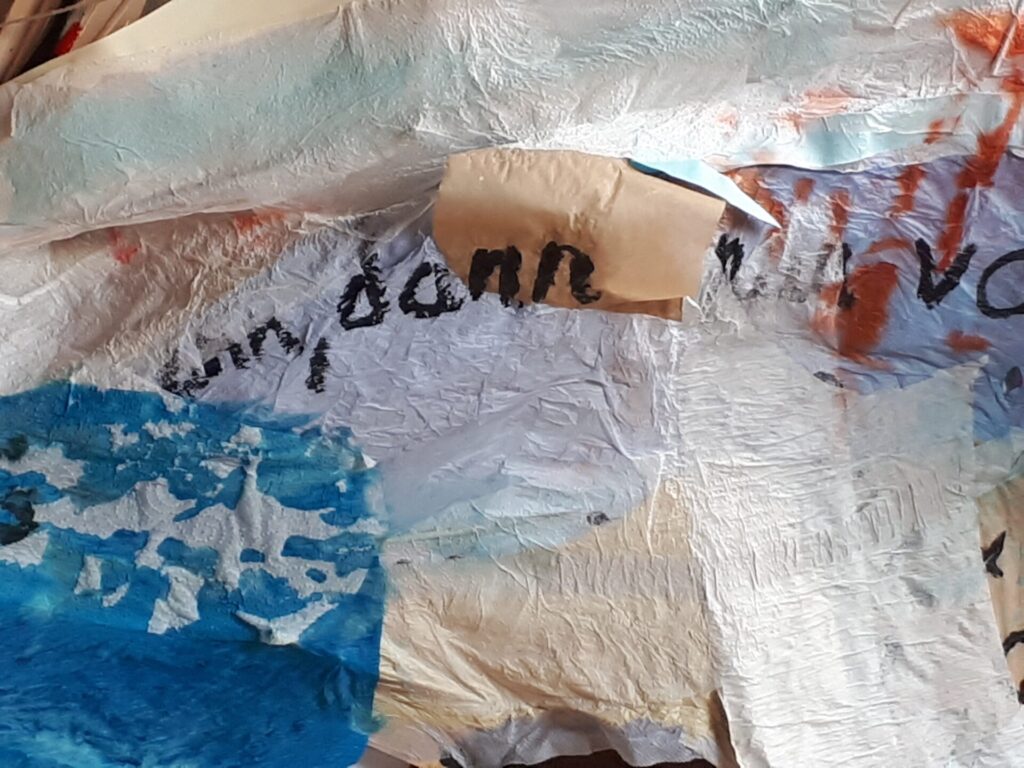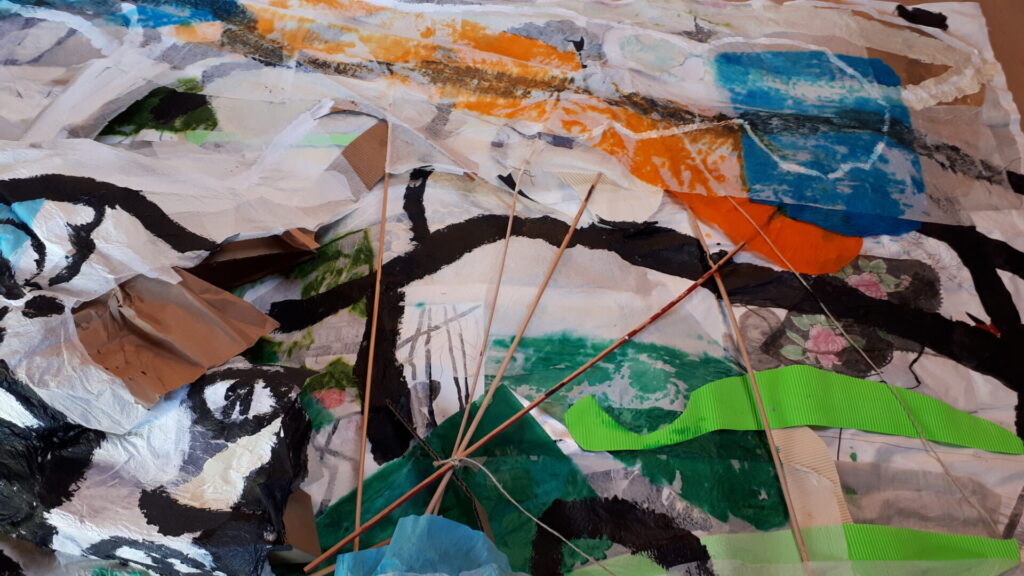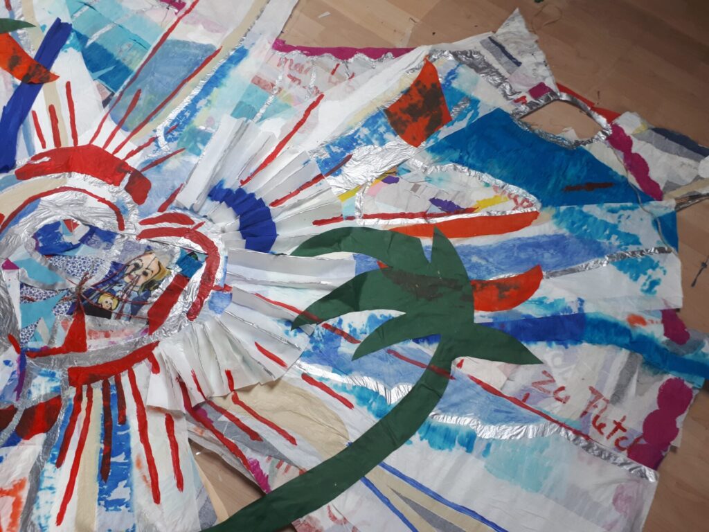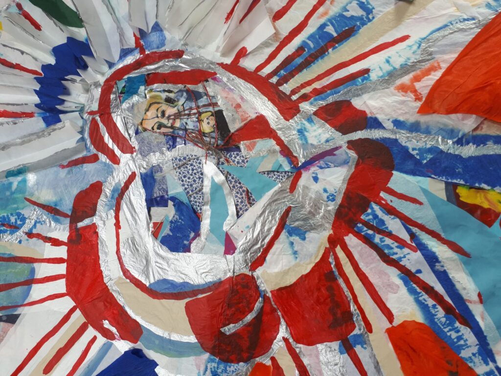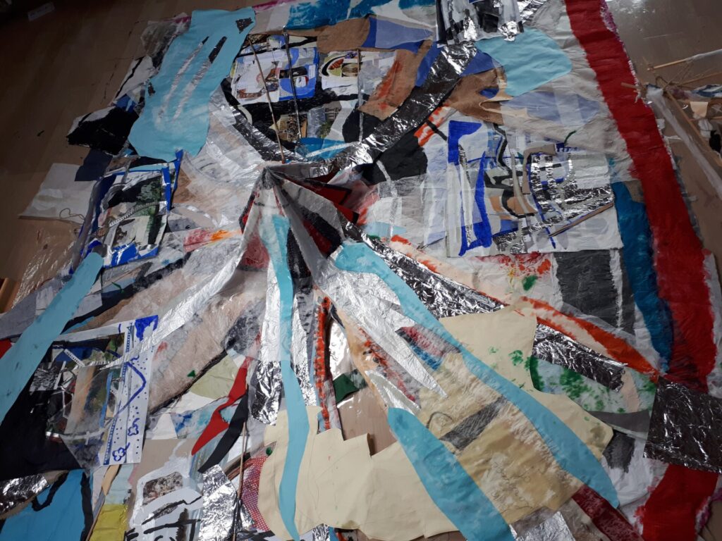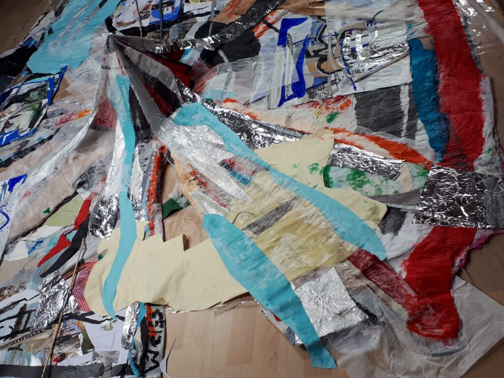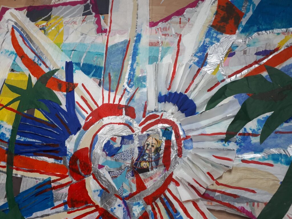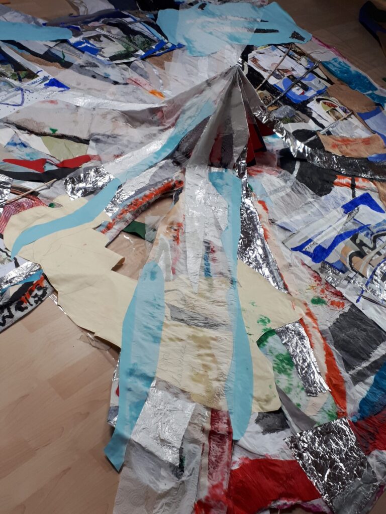 Der lange Brief und die Fahrt mit dem Riesenrad (große Collage als Sonnensegel gedacht).
