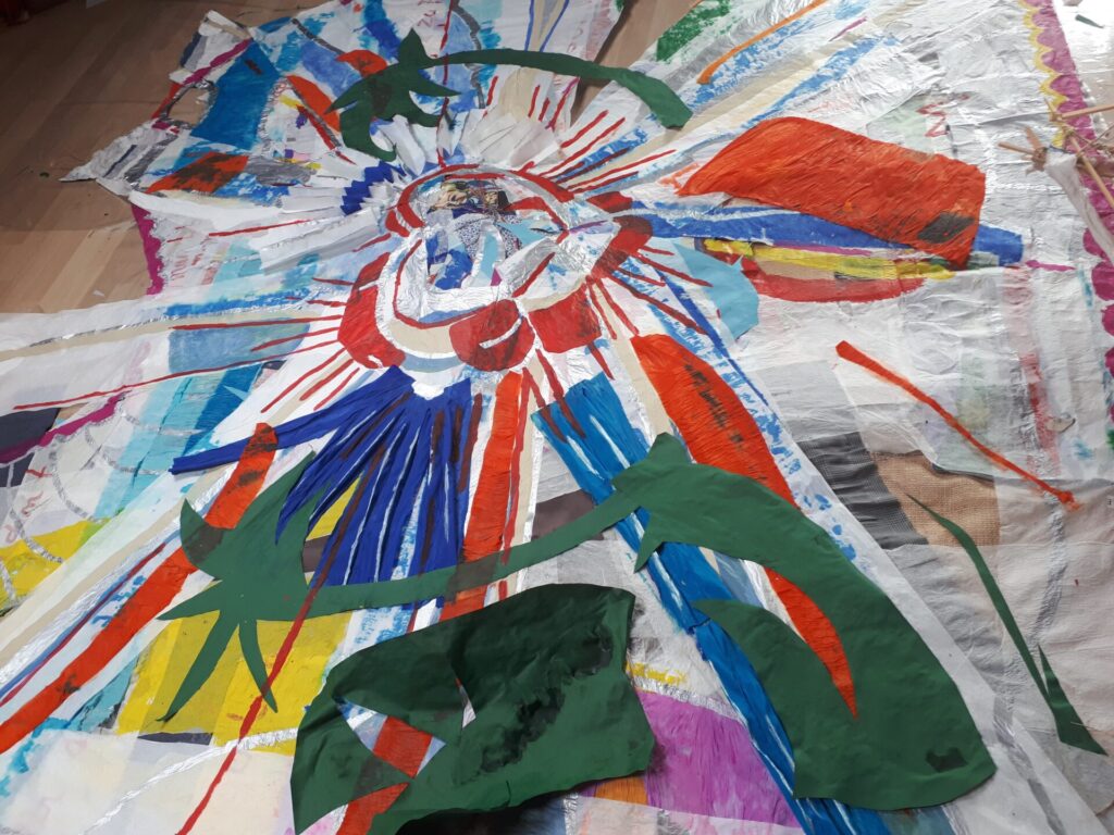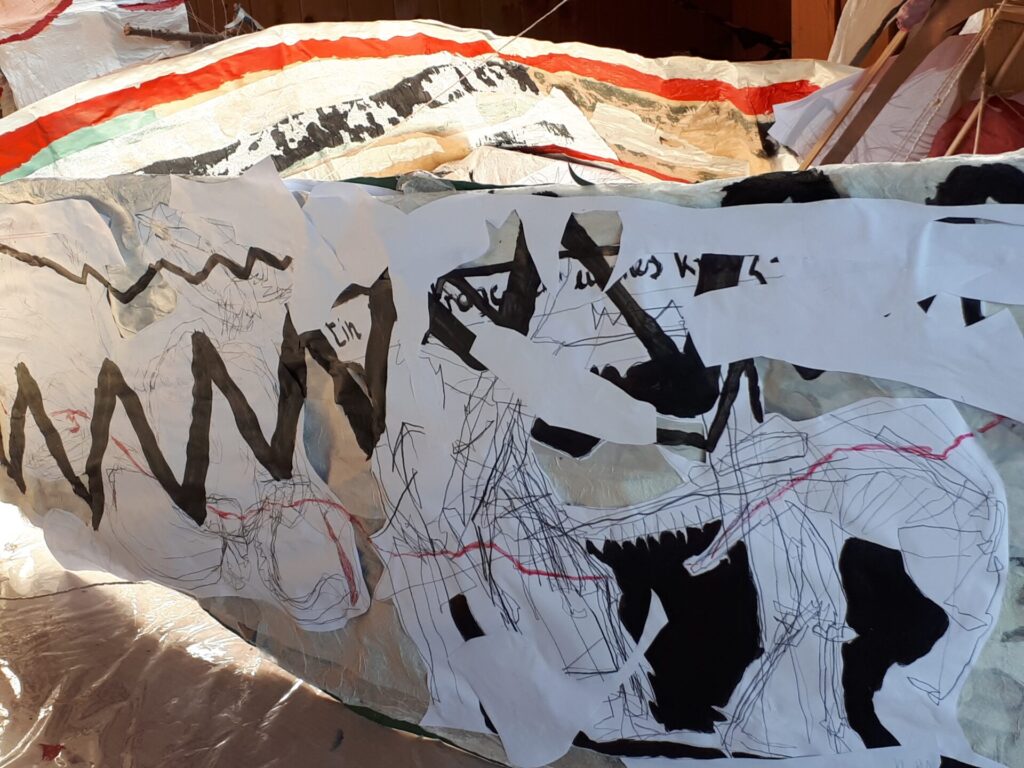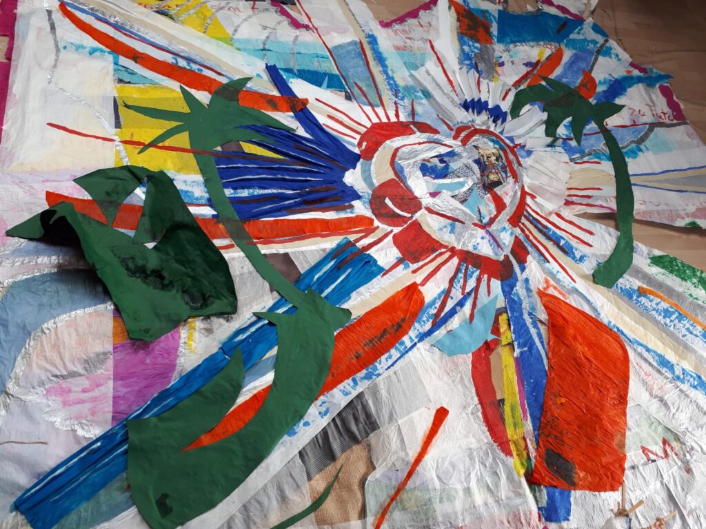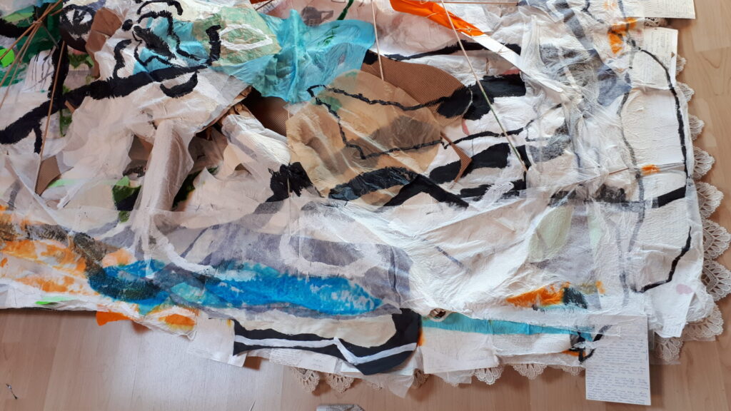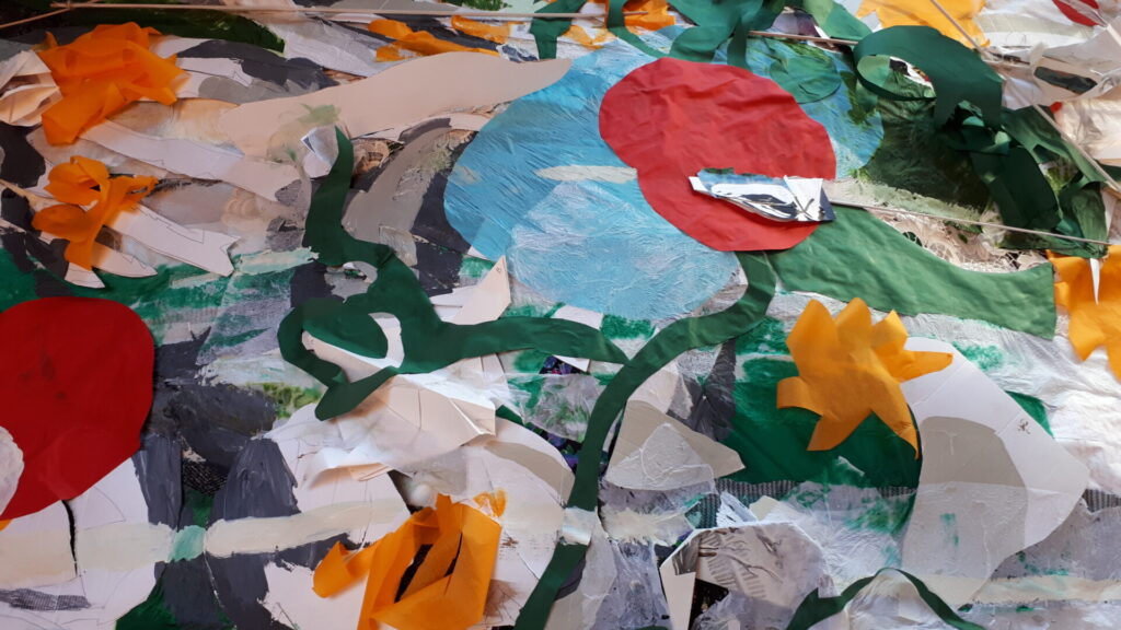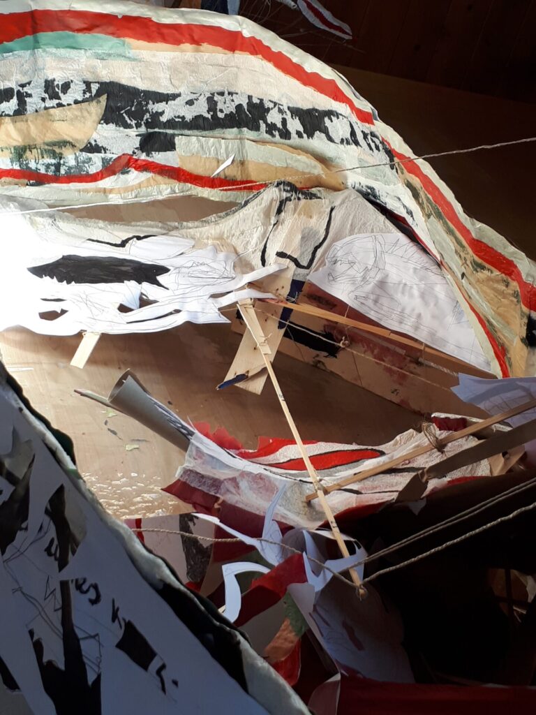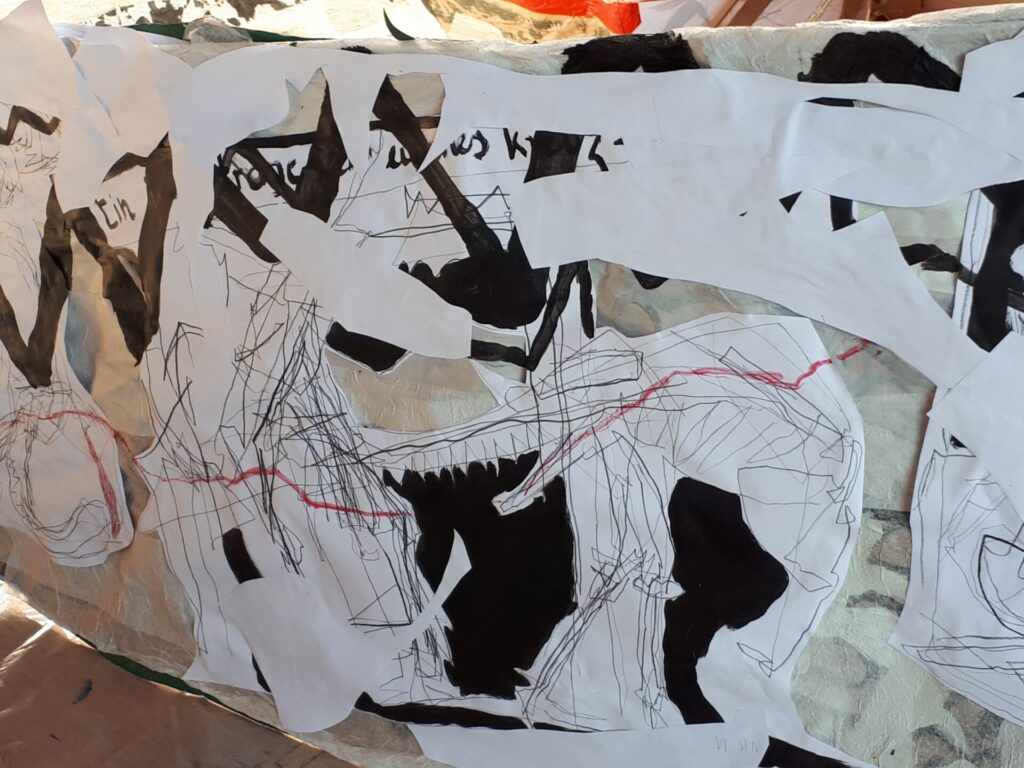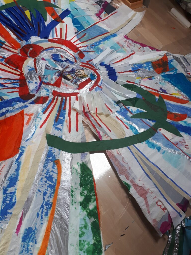 Der lange Brief und die Fahrt mit dem Riesenrad (große Collage als Sonnensegel gedacht).
