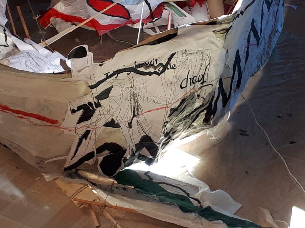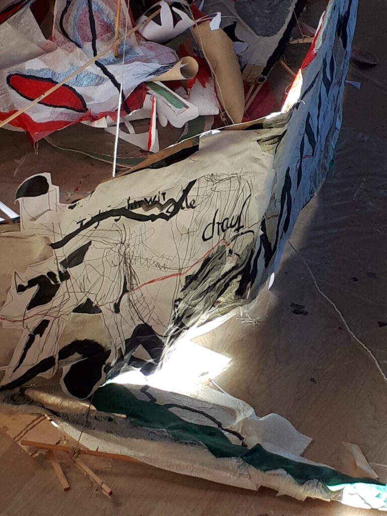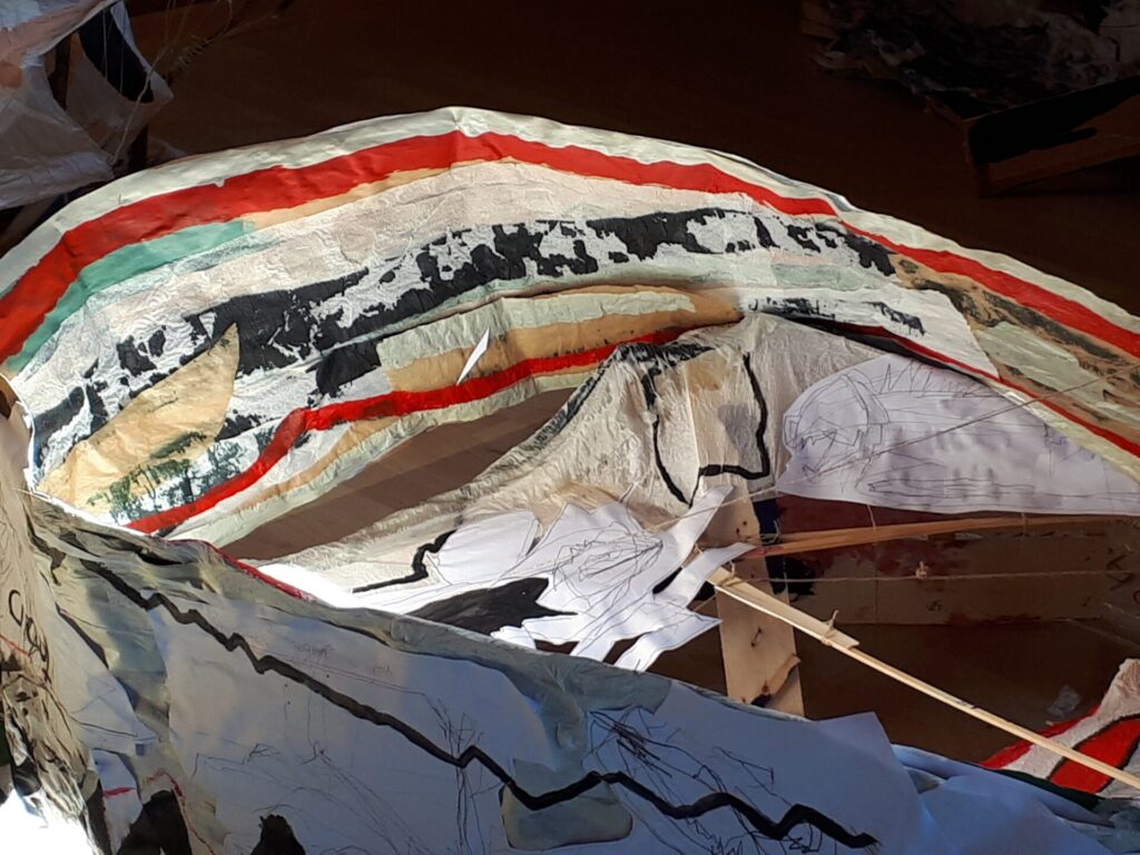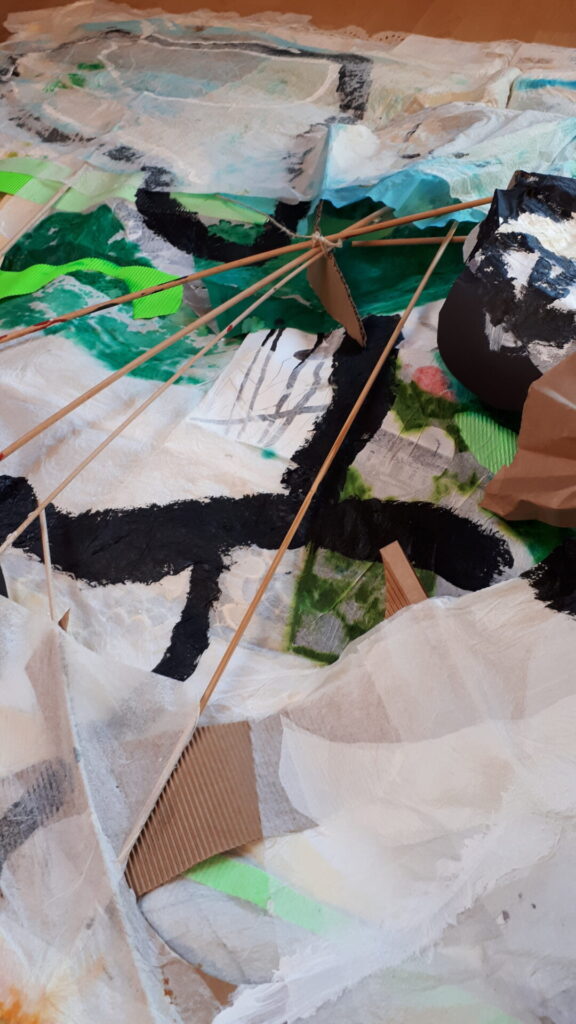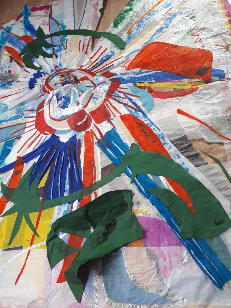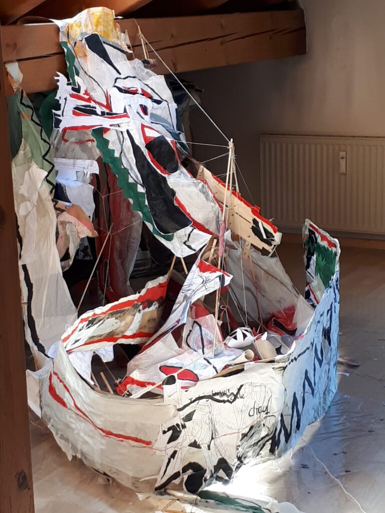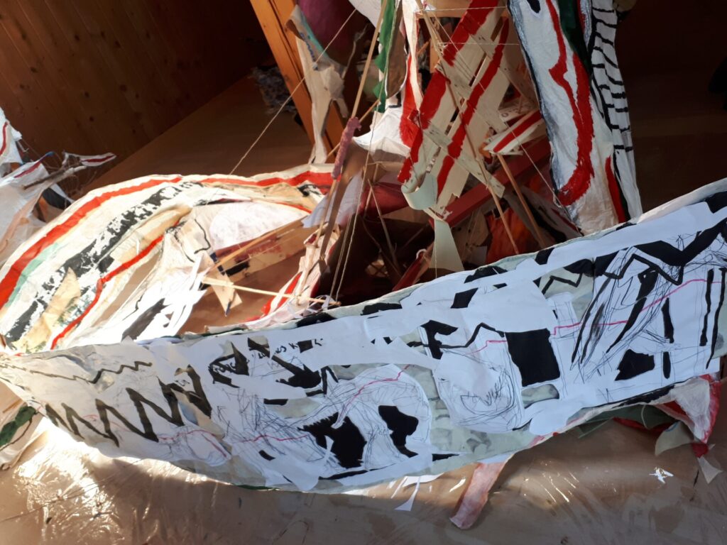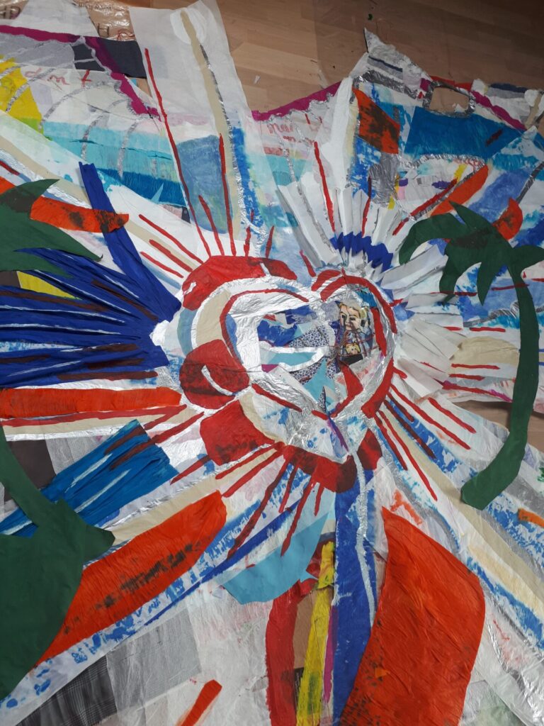 Der lange Brief und die Fahrt mit dem Riesenrad (große Collage als Sonnensegel gedacht).