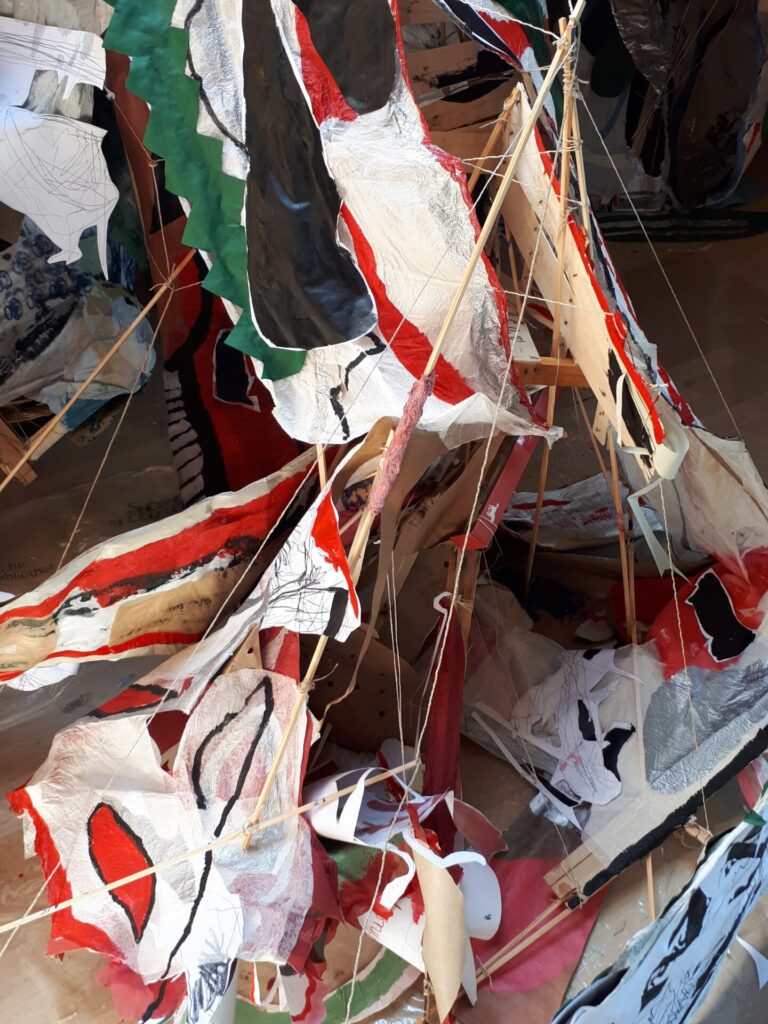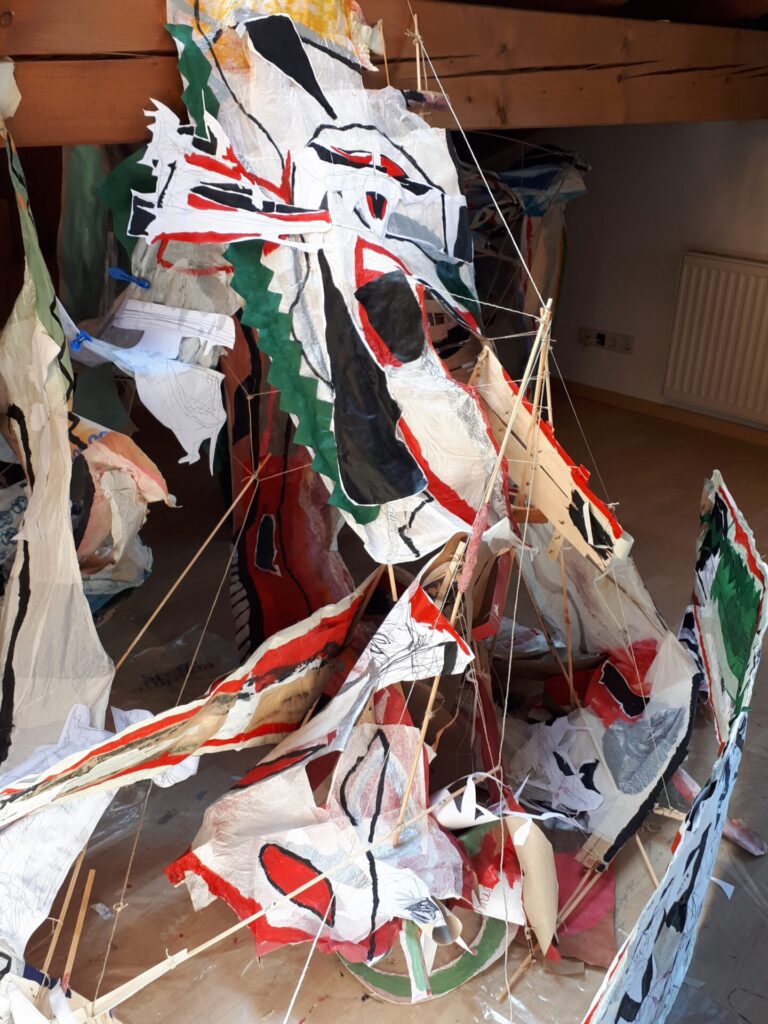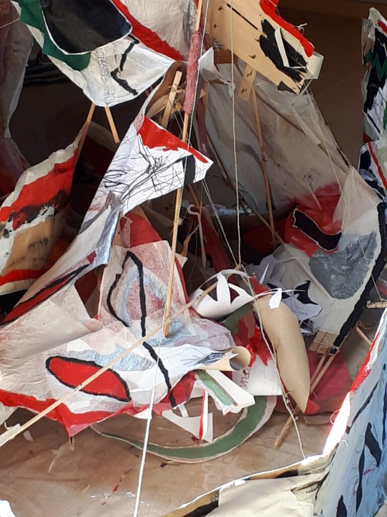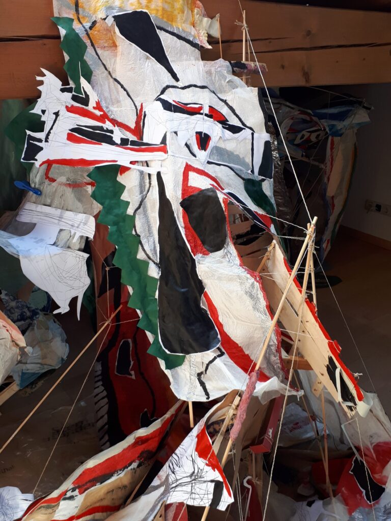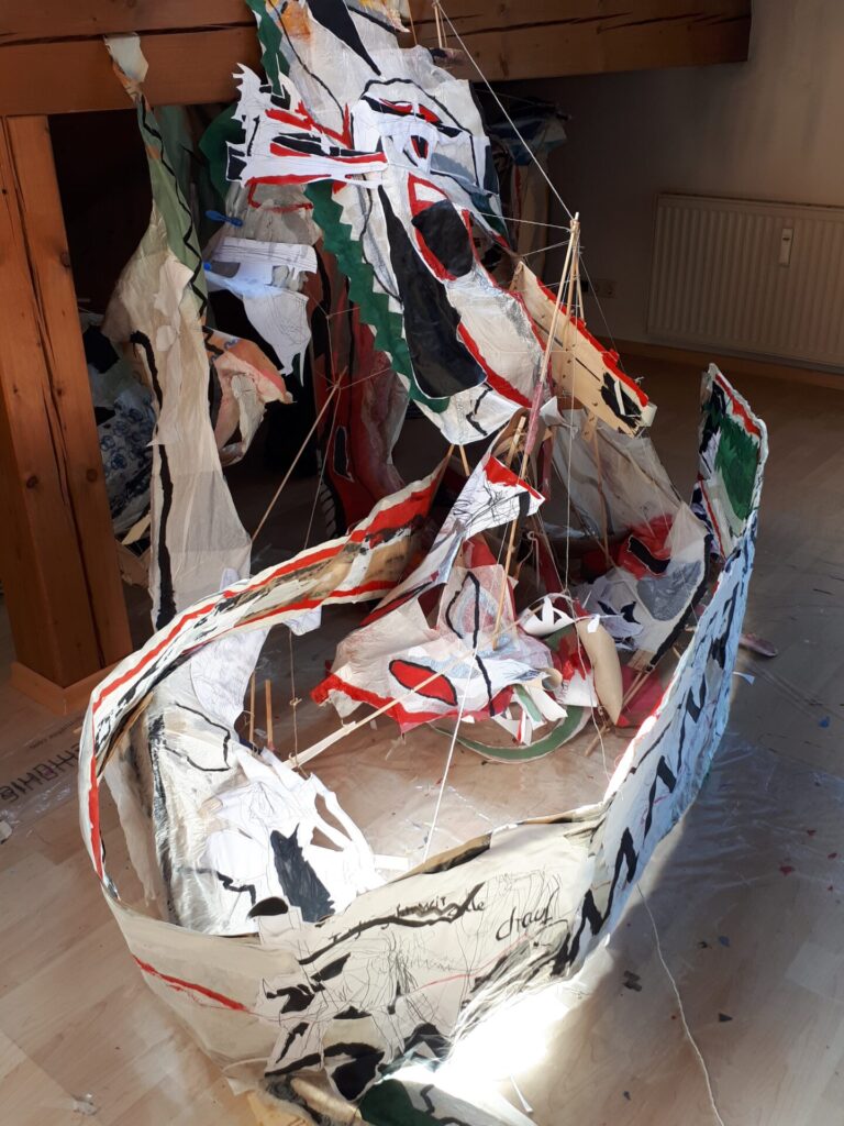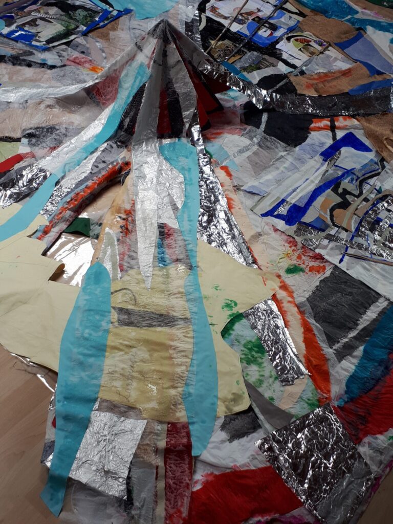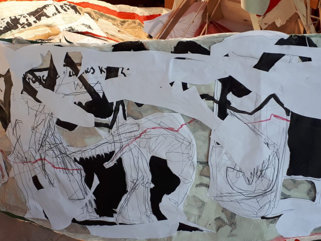 Der lange Brief und die Fahrt mit dem Riesenrad (große Collage als Sonnensegel gedacht).